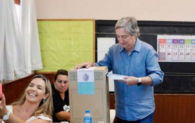 Matas Stevanato, intendente de Maip, se dispone a votar junto a su familia. Mendoza cerr la votacin con solo 47% de asistencia.